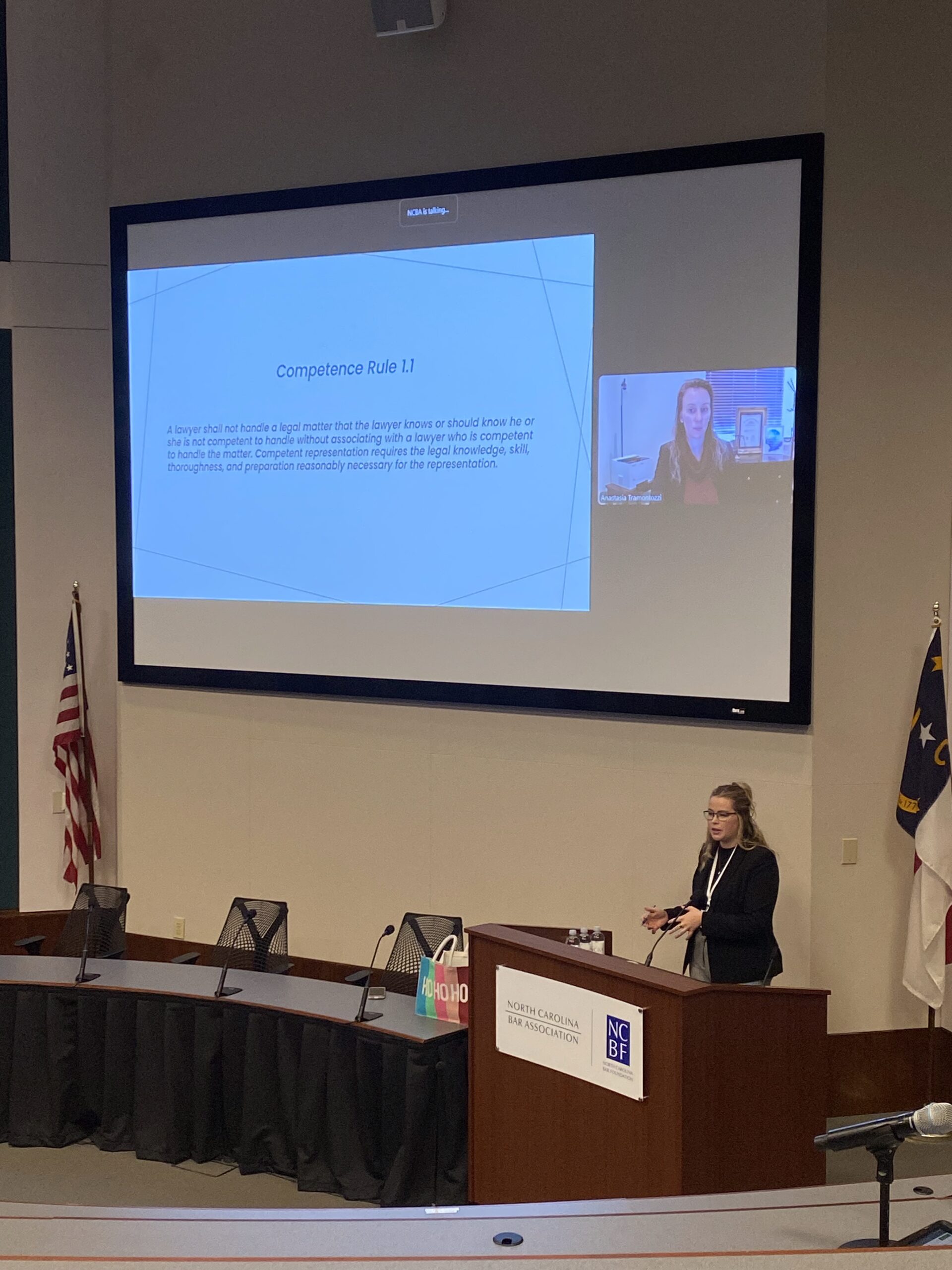 I was sick the morning of the CLE because my children shared their stomach bug with me. Thus, the NCBA had to play an old video of me giving the same CLE a year ago. Hopefully I was better looking in that video than in real life and that attendees left under the impression that I’m funny and intelligent…and also that they shouldn’t violate the Bar Rules. — Joshua Walthall