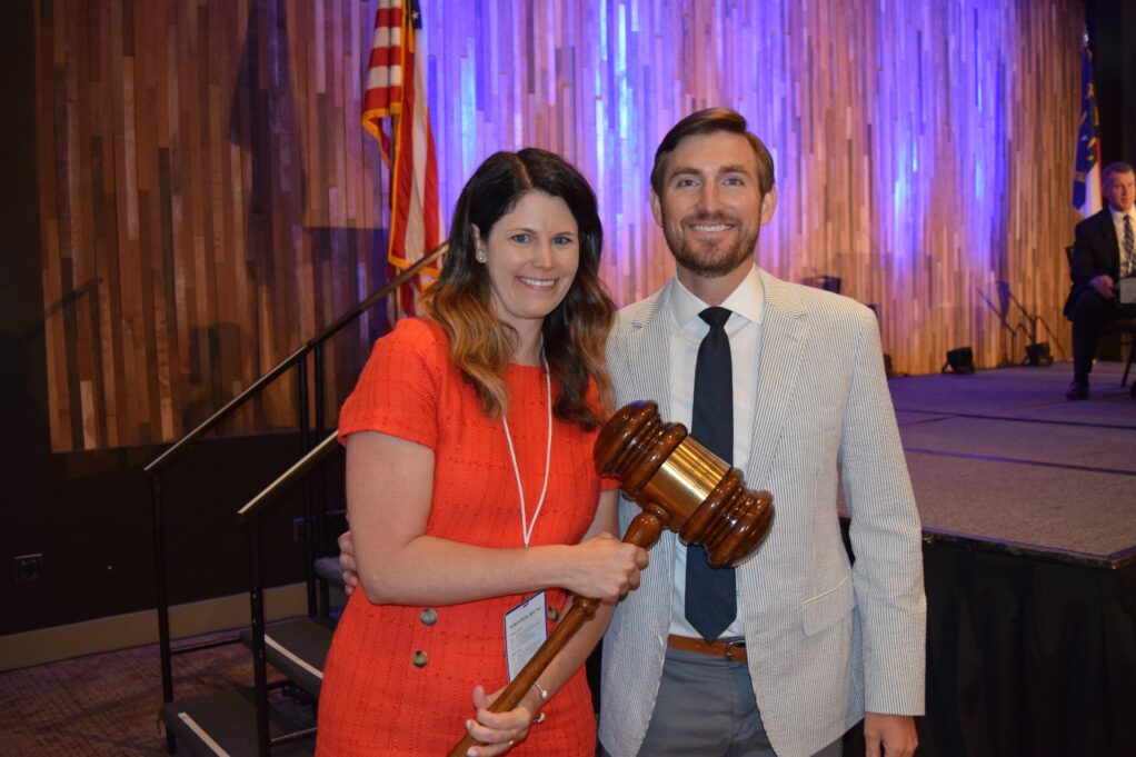 Lisa Williford accepts the chair’s gavel from Will Quick.